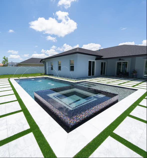 Come and enjoy our saltwater pool, designed to bring a touch of LA to Florida, just as my wife envisioned! Our pool features an infinity-edge spa, offering both hot water with soothing air bubbles and a cold plunge option for muscle relaxation. The pool is equipped with jets throughout for a refreshing experience.