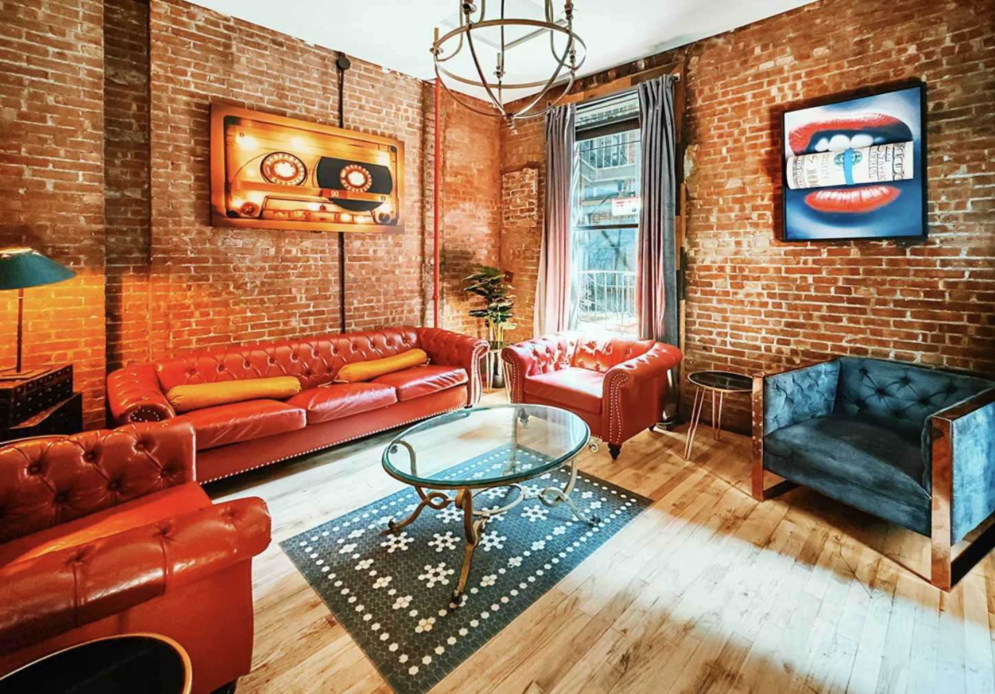 This inviting space in the heart of Midtown Manhattan's Garment District is characterized by its warm, intimate speakeasy vibes with touches of European and industrial influences. With an impressive 2,500 square feet of usable space, we can comfortably seat up to 100 people or host up to 200 standing guests. Exposed brick walls, hardwood floors, and plush furniture lend an inviting ambience to the venue, perfectly suited for cocktail parties, networking events, after parties, holiday parties, birthday celebrations, office parties, bar/bat mitzvahs, or even a bachelor/bachelorette party. Our amenities ensure that you have everything you need to host an unforgettable event!
